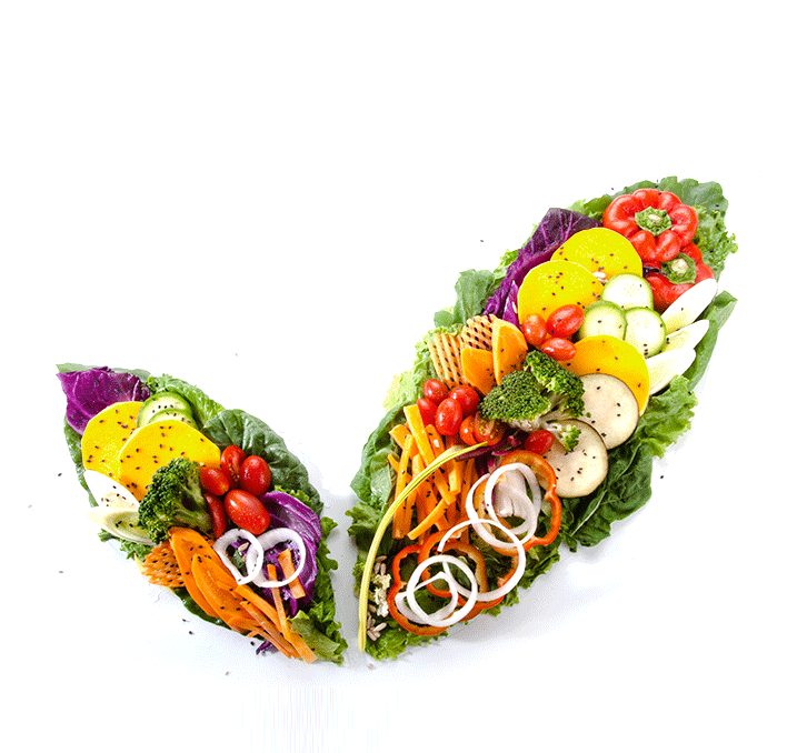 Para elaborar nuestros productos, utilizamos toda variedad de verduras, vegetales, hojas, frutas, granos, crudos o cocidos, combinándolas con pollos, pescados y mariscos.